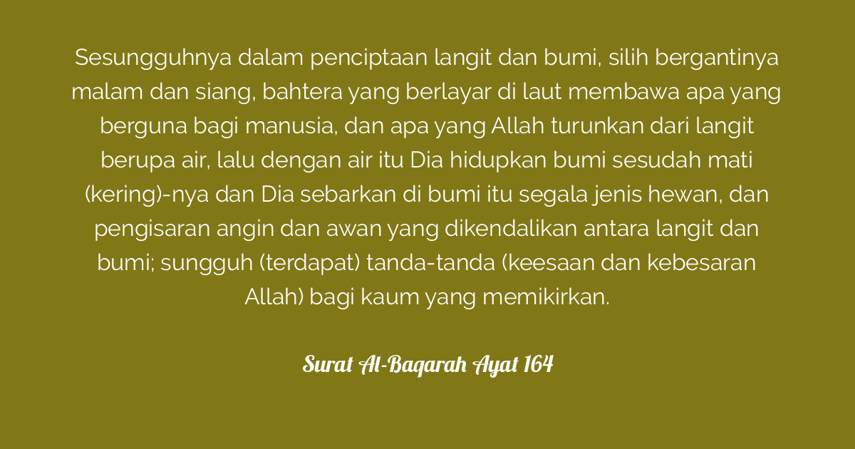 Tanda tanda yang dimaksud adalah tanda tanda kebesaran allah tanda tanda keagungan allah dsb. Allah menjelaskan kepada kita bahwa sesungguhnya dalam penciptaan langit dan bumi dan silih bergantinya malam dan siang terdapat tanda tanda bagi 33629765. Sesungguhnya dalam penciptaan langit dan bumi dan silih bergantinya malam dan siang terdapat tanda tanda bagi orang orang yang berakal yaitu orang orang yang mengingat allah sambil berdiri atau duduk atau dalam keadaan berbaring dan mereka memikirkan tentang penciptaan langit dan bumi seraya berkata. Pada ayat ke 190 surat ali imran allah menjelaskan kepada kita bahwa sesungguhnya dalam penciptaan langit dan bumi dan silih bergantinya malam dan siang terdapat tanda tanda bagi orang orang yang berakal.