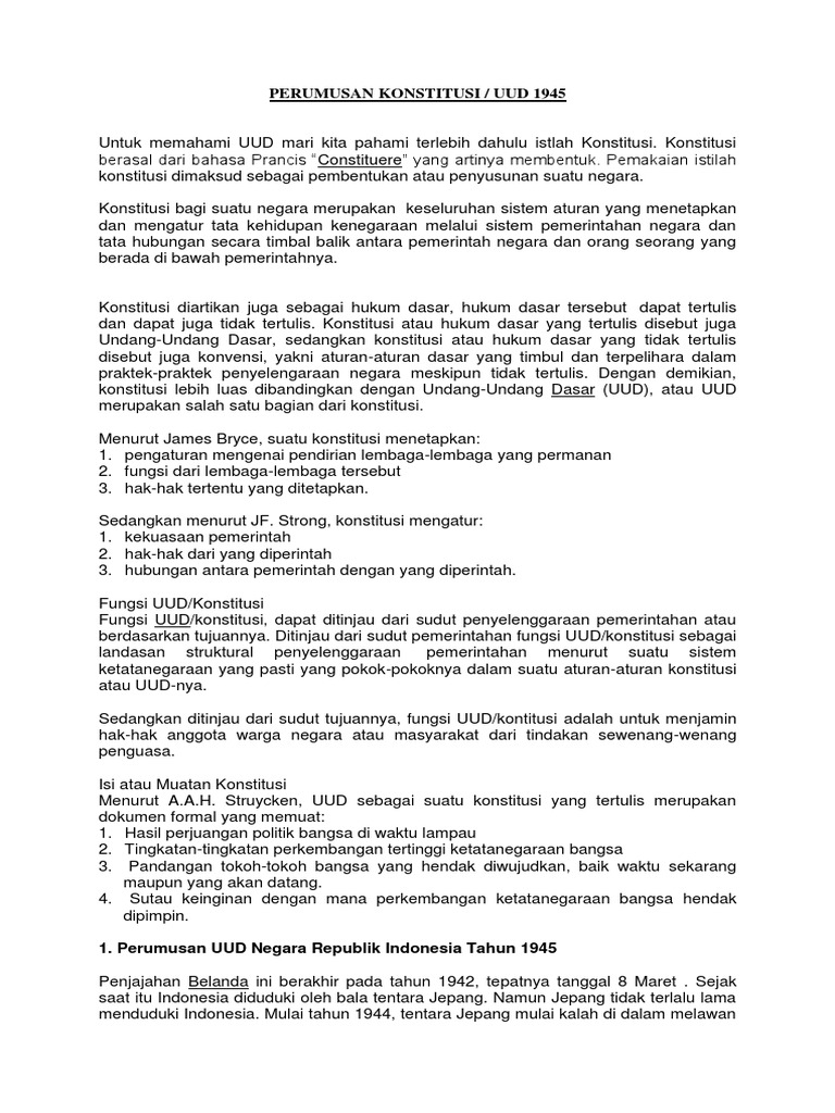 B kesatuan yaitu dimana dalam negara hanya ada satu pemegang kekuasaan pemerintahan yakni pemerintah pusat yang berdaulat penuh ke dalam dan ke luar memiliki satu uud tidak mengenal adanya negara bagian tetapi dikenal adanya pembagian daerah atas beberapa. Constituante atau undang undang dasar atau disingkat uud dalam negara adalah sebuah norma sistem politik dan hukum bentukan pada pemerintahan negara biasanya dikodifikasikan sebagai dokumen tertulis. Pertama hukum tertulis adalah suatu konstitusi negara yang menjadi dasar dan sumber dari peraturan peraturan lain atau perundang undangan lain yang berlaku di suatu negara atau aturan dasar yang mengatur penyelenggaran negara yang dituangkan dalam bentuk tertulis contohnya uud 1945.