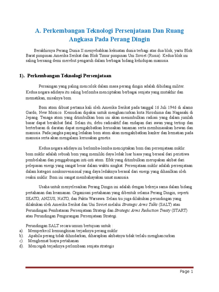 Perkembangan teknologi persenjataan berkaitan erat dengan perkembangan militer khususnya ketika perang dunia dan perang dingin. Perang dingin bahasa inggris. Persaingan yang terjadi dalam perang dingin adalah persaingan mempertahankan hegemoni dipelbagai kawasan dengan. Hubungan perkembangan teknologi persenjataan dan ruang angkasa dengan kondisi keamanan dunia pada masa perang.