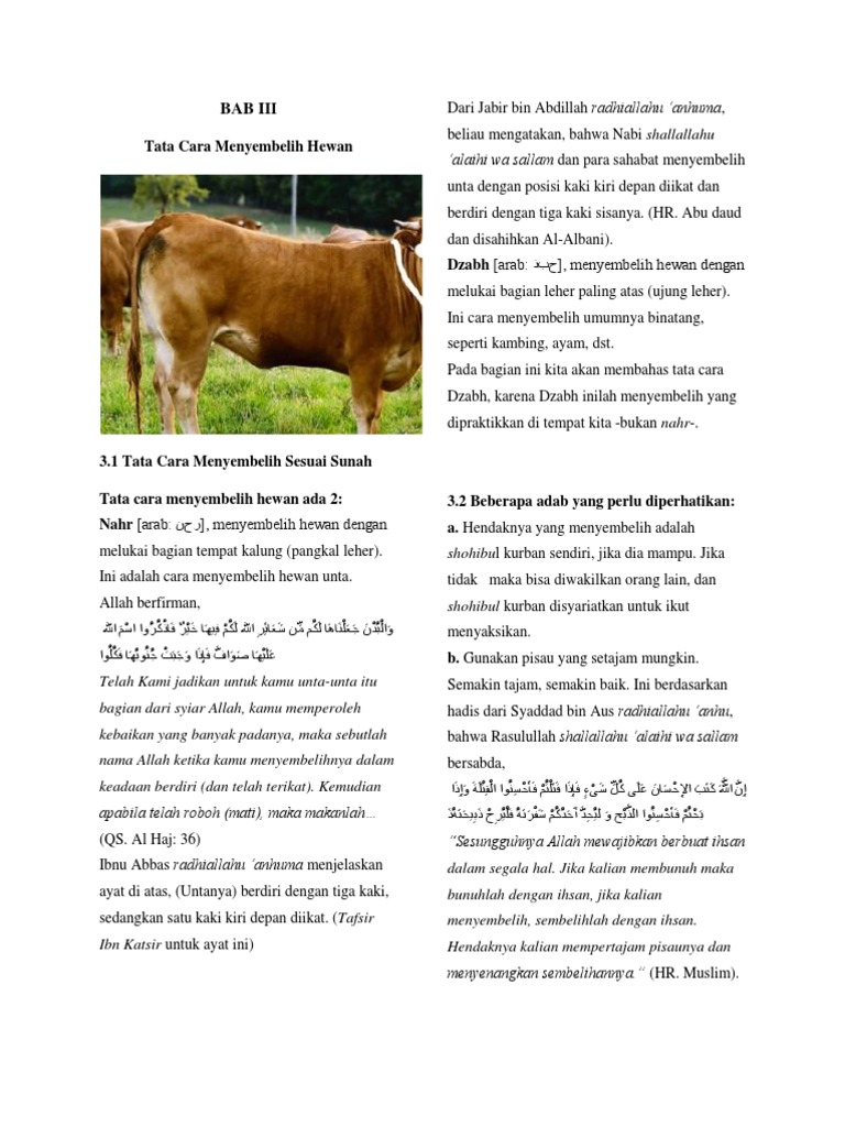 Jelaskan tata cara penyembelihan hewan kurban. Tata cara penyembelihan secara mekanik penyemb lihan mekanik dilakukan di tempat khusus penyemb lihan hewan atau rph rumah penyemb lihan hewan. Setelah memahami beberapa penjelasan mengenai pentingnya aqiqah untuk anak. Kedua cara ini diperbolehkan dan hasil sembelihannya halal dimakan dengan catatan syara syarat yang telah ditentukan syara harus terpenuhi seperti ketentuan hewan yang disembelih alat yang dipergunakan dan ketentuan orang yang menyembelih semuanya harus memenuhi syarat.