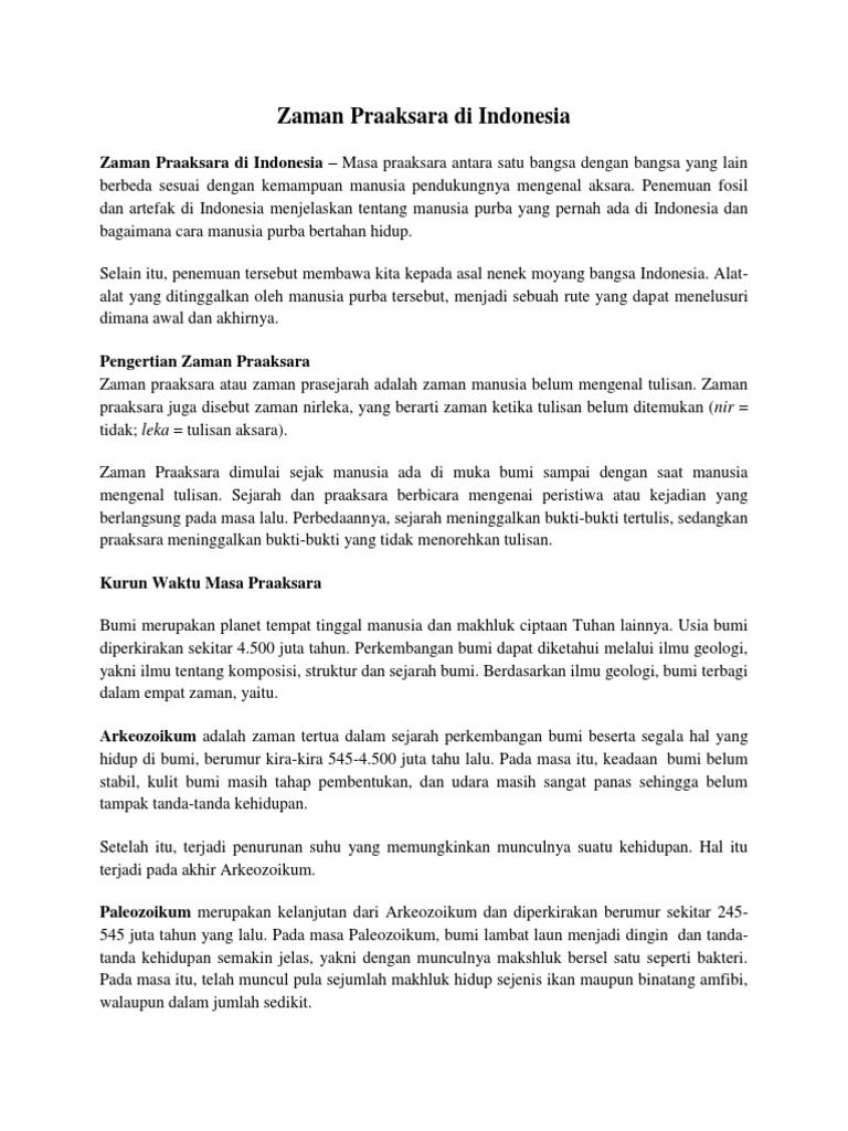 000 tahun yang lalu. Zaman mesolitikum adalah zaman yang terjadi pada masa holosen setelah zaman es berakhir. Pendukung kebudayaannya ialah homo sapiens yang merupakan manusia cerdas. 1 zaman prakambrium 4 5 milyar 290 juta tahun lalu zaman prakambrium adalah zaman paling awal dalam sejarah pembentukan bumi berlangsung pada 4 5 milyar sampai 290 juta tahun yang lalu.