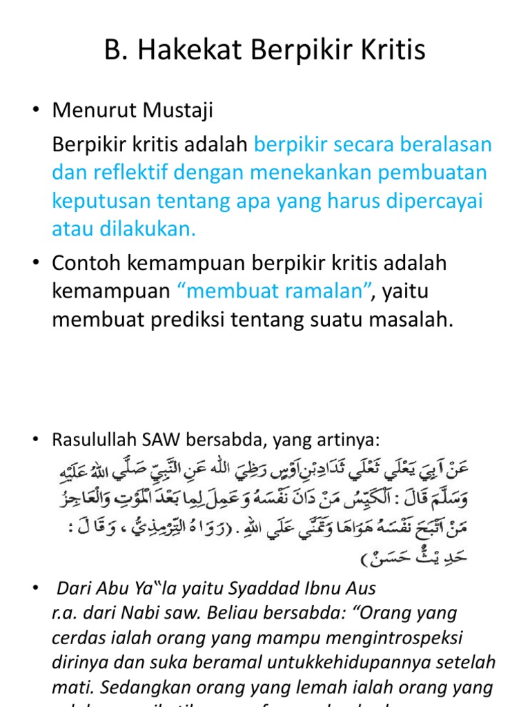 Orang yang mampu berpikir kritis termasuk. Namun jika anda benar benar ingin belajar dan mengembangkan kemampuan berpikir kritis buang ego anda jauh jauh dan bertemanlah dengan orang orang yang lebih cerdas dari anda. Allah menjelaskan kepada kita bahwa sesungguhnya dalam penciptaan langit dan bumi dan silih bergantinya malam dan siang terdapat tanda tanda bagi orang orang yang. Salah satu sifat alami manusia adalah enggan menjadi yang nomor 2.