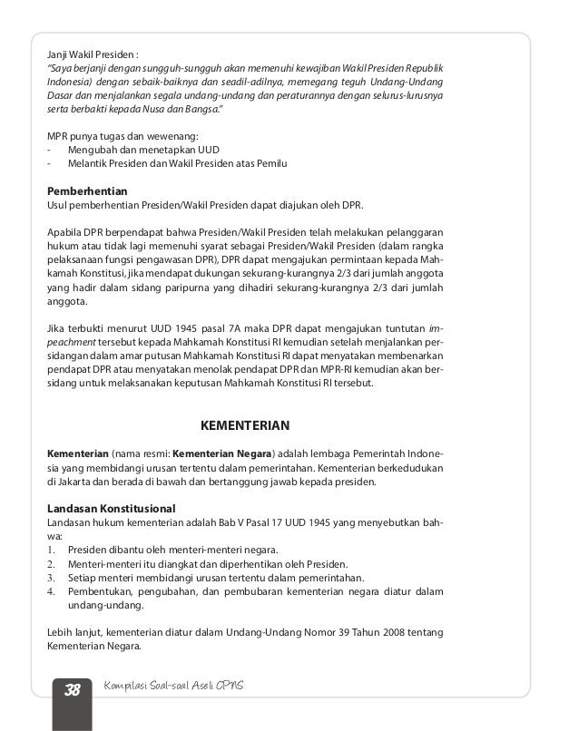 Dan atau wakil presiden telah melakukan pelanggaran hukum tersebut ataupun telah tidak lagi memenuhi syarat sebagai presiden dan atau wakil presiden adalah dalam rangka pelaksanaan fungsi pengawasan dewan perwakilan rakyat. Undang undang dasar negara republik indonesia tahun 1945 dalam satu naskah. Undang undang dasar negara republik indonesia tahun 1945 pembukaan. Salah satu yang paling krusial adalah perubahan pada pasal 7 uud 1945.
