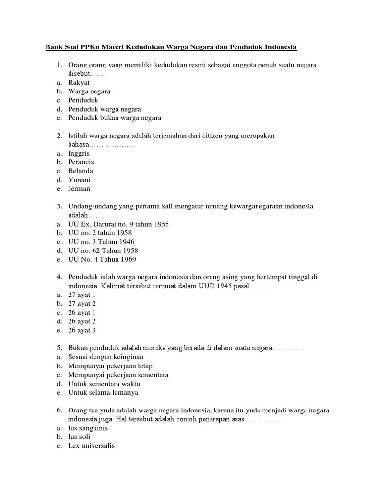 Undang undang kewarganegaraan yang pernah berlaku di indonesia diantaranya. 3 tahun 1946 diantaranya. Jawabannya adalah tidak sebab istilah penduduk memiliki cakupan yang lebih luas dari parda warga negara indonesia sebagaimana ditegaskan dalan pasal 26 ayat 2 uud 1945 yang bebunyi bahwa penduduk ialah warga negara indonesia dan orang asing yang bertempat tinggal di indonesia. Undang undang republik indonesia nomor 3 tahun 1946 mengenai kewarganegaraan indonesia.