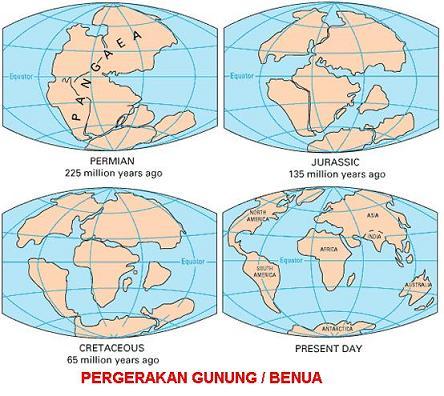 2 bagian timur bergerak ke timur menjadi. Pulau madagaskar dalam gerakannya ke arah barat terhambat oleh afrika. Sebagian besar permukaan benua ini tertutup oleh es dan salju tebalnya rata rata 2 440 meter. Tanah di amerika selatan dan australia menunjukan perbedaan sifat c.