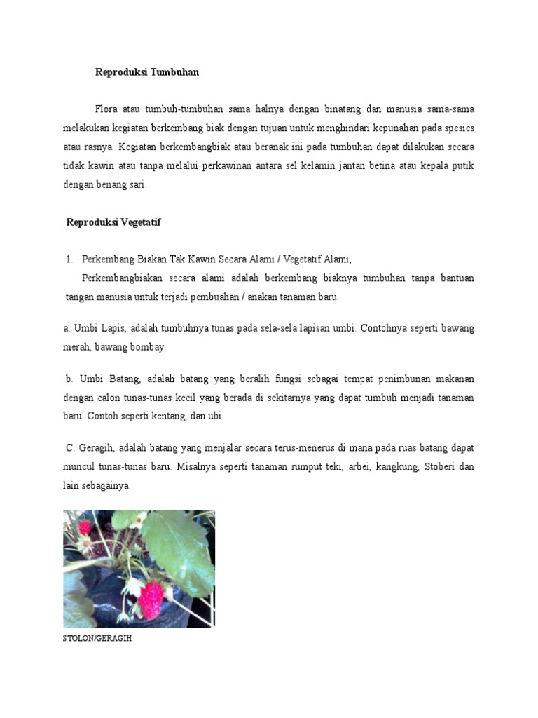 Perkembangbiakan tumbuhan tanpa melalui perkawinan dan tanpa campur tangan manusia disebut perkembangbiakan. Tumbuhan berkembang biak dengan dua cara yaitu secara vegetatif dan generatif. Contoh perkembangbiakan vegetatif alami. Pembahasan reproduksi pada tumbuhan dan hewan dapat berlangsung dengan 2 cara yaitu. Perkembangbiakan vegetatif perkembangbiakan secara vegetatif adalah perkembangbiakan yang terjadi tanpa disertai pertemuan sel jantan dan sel kelamin betina tidak melalui perkawinan.