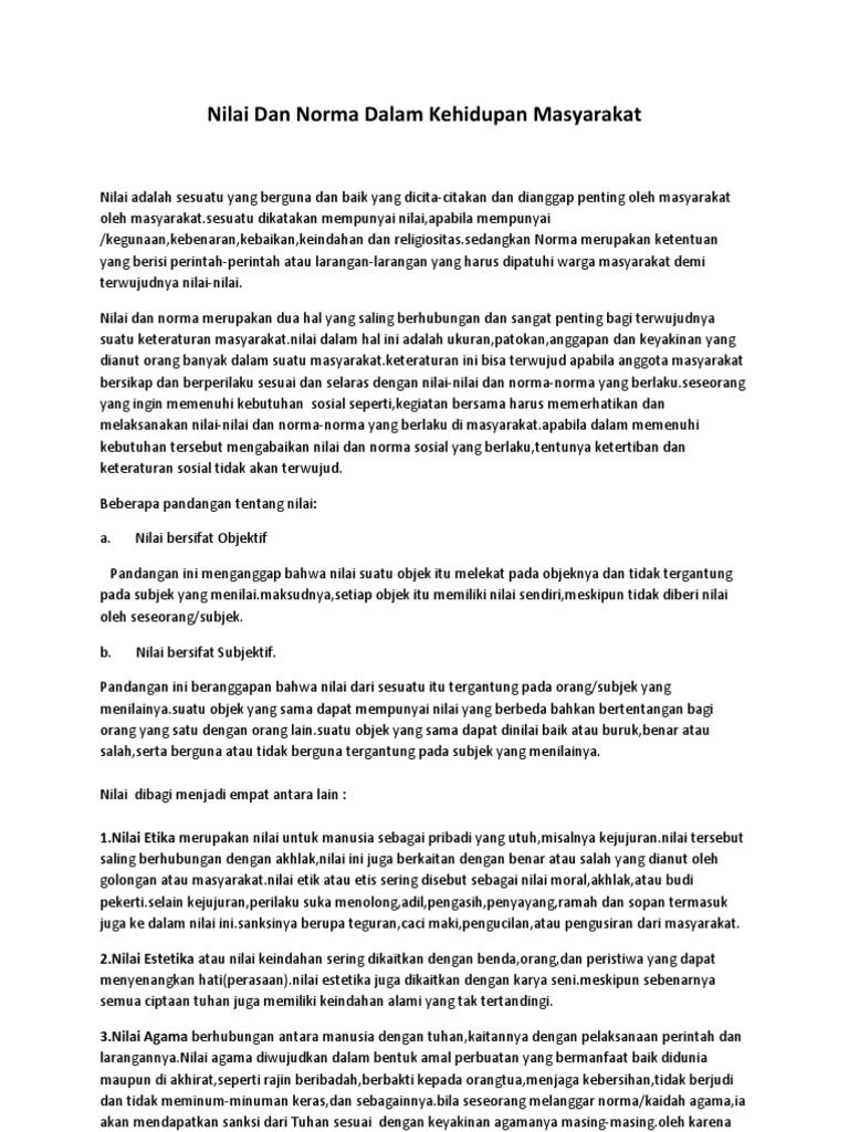 Sanksi bagi seseorang yang melanggar norma kesopanan dalam hidup bermasyarakat adalah. Norma adalah undang undang peraturan ketentuan maupun lain sebagainya yang akan dibentuk oleh negara. Nilai merupakan sesuatu perbuatan yang membuat dirinya menjadi bernilai jika dia melakukan perbuatan yang baik kepada orang lain dan tidak berbuat semena mena dan mematuhi aturan hukum yang berlaku kaidah atau norma terdapat dalam agama kesopanan dan hukum jadi dapat dikatakan seseorang itu bernilai apabila ia mematuhi hukum atau norma. Norma ialah suatu petunjuk atau juga patokan dalam perilaku yang benar dan pantas dilakukan saat berinteraksi sosial dalam suatu masyarkat. Seseorang yang melanggar norma kesusilaan ini umumnya akan mendapatkan sanksi yang diberikan oleh masyarakat.