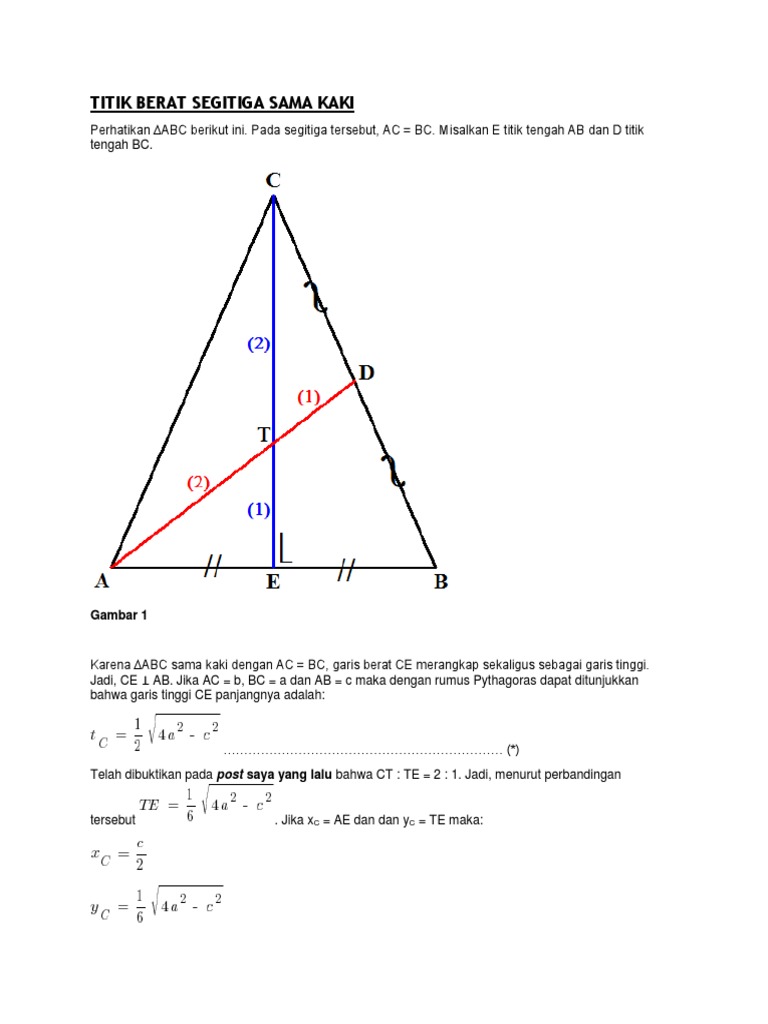 Sebagai kasus khusus kali ini akan dibahas mengenai titik berat segitiga sama kaki titik berat segitiga sama sisi dan titik berat segitiga siku siku.