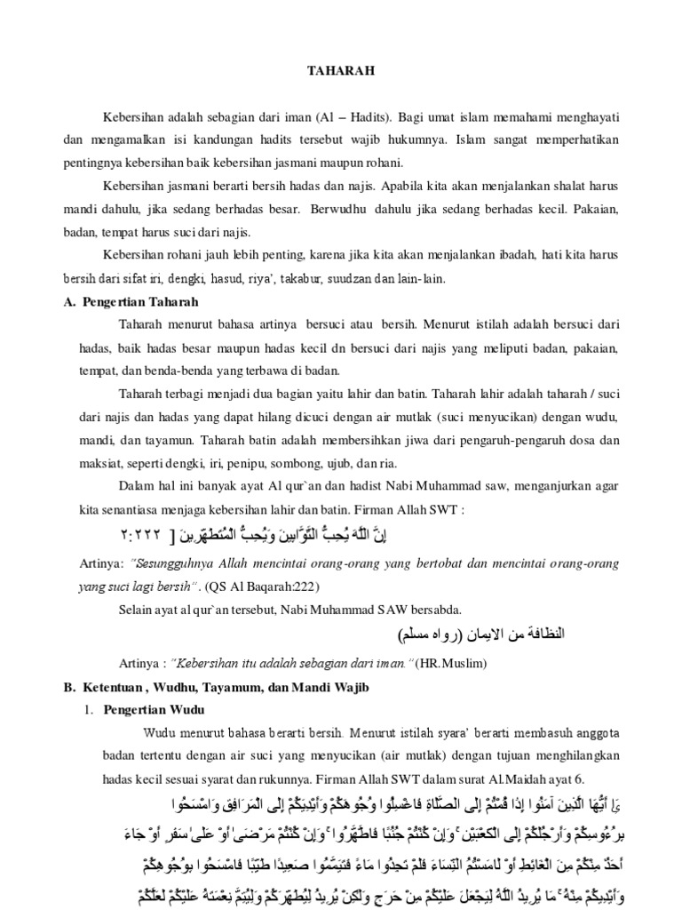 Najis 1 lihat jawaban mamanosz mamanosz kelas vii bhs arab tayamum saya bantu jawab ya dek. Ada perbedaan pendapat tentang sebab tayamum yang ke 3 ini imam hanafi berpendapat hanya ada dua yg disebutkan diatas yg merupakan sebab diperbolehkannya tayamum menurut imam syafi i sebab ke 3 adalah adanya air sedikit tetapi untuk minum hewan yang dimulyakan oleh syara menurut imam malik adanya air sedikit tetapi untuk minum hewan sekalipun anjing dan menurut imam hambali sebab. Tayamum hanya dilakukan pada peristiwa peristiwa kritis yang tidak ada air atau tidak bisa mencapai lokasi air berada. Pengertian wudhu adalah membasuh bagian badan tertentu dengan tujuan untuk menghilangkan hadas kecil.