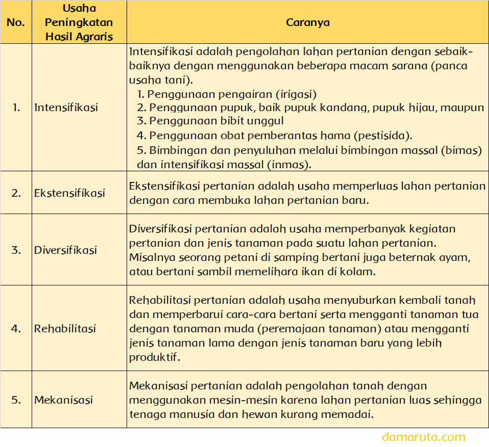 Usaha peningkatan hasil agraris. Usaha peningkatan hasil agraris intensifikasi pertanian. Usaha peningkatan hasil agraris rehabilitasi caranya 31545254 jawaban. Rata rata hasil produksi padi di indonesia pada tahun 1956 1960 yakni berkisar 2 ton per hektar jatileksono 1987. Ketiga upaya peningkatan produksi panen tersebut sudah dilakukan sejak tahun 1950 yang dilatarbelakangi oleh ketertarikan pemerintah untuk mengkonversi lahan tanaman tebu menjadi lahan tanaman padi.