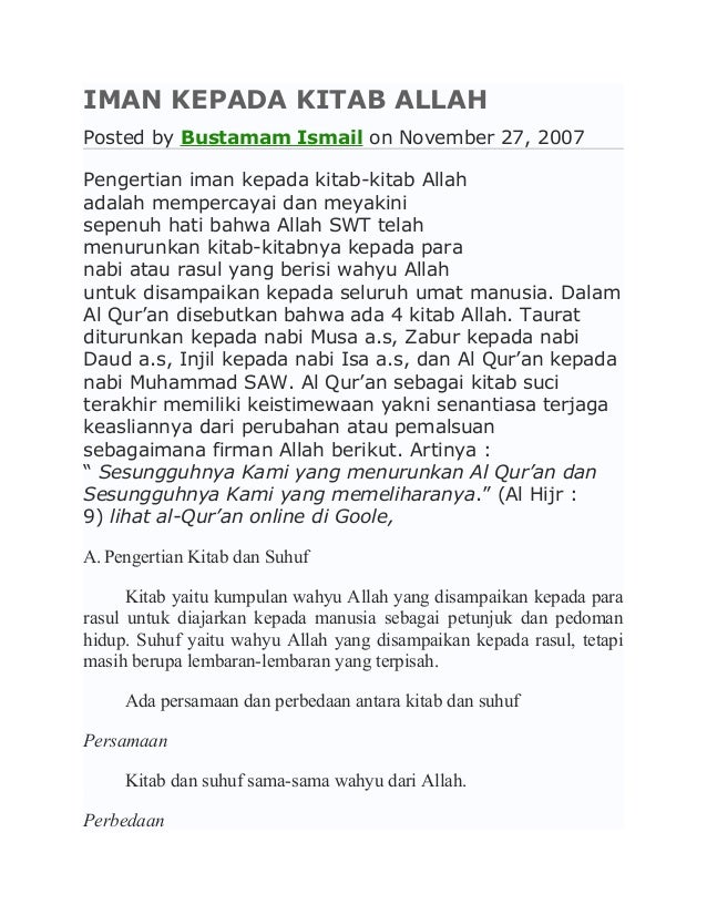 Wahyu allah yang disampaikan kepada para rasul tetapi tidak wajib disampaikan atau diajarkan kepada umat manusia berupa lembaran lembaran dinamakan. Wahyu allah yang disampaikan kepada para rasul tetapi tidak wajib disampaikan atau diajarkan kepada umat manusia berupa lembaran lembaran dinamakan. Kitab adalah kumpulan wahyu allah yang diturunkan kepada rasul allah untuk di sampaikan kepada umatnya sebagai petunjuk dan pedoman hidup. Kitab kitab samawi yang disebutkan di dalam al quran. Malam diturunkannya al qur an dinamakan malam.